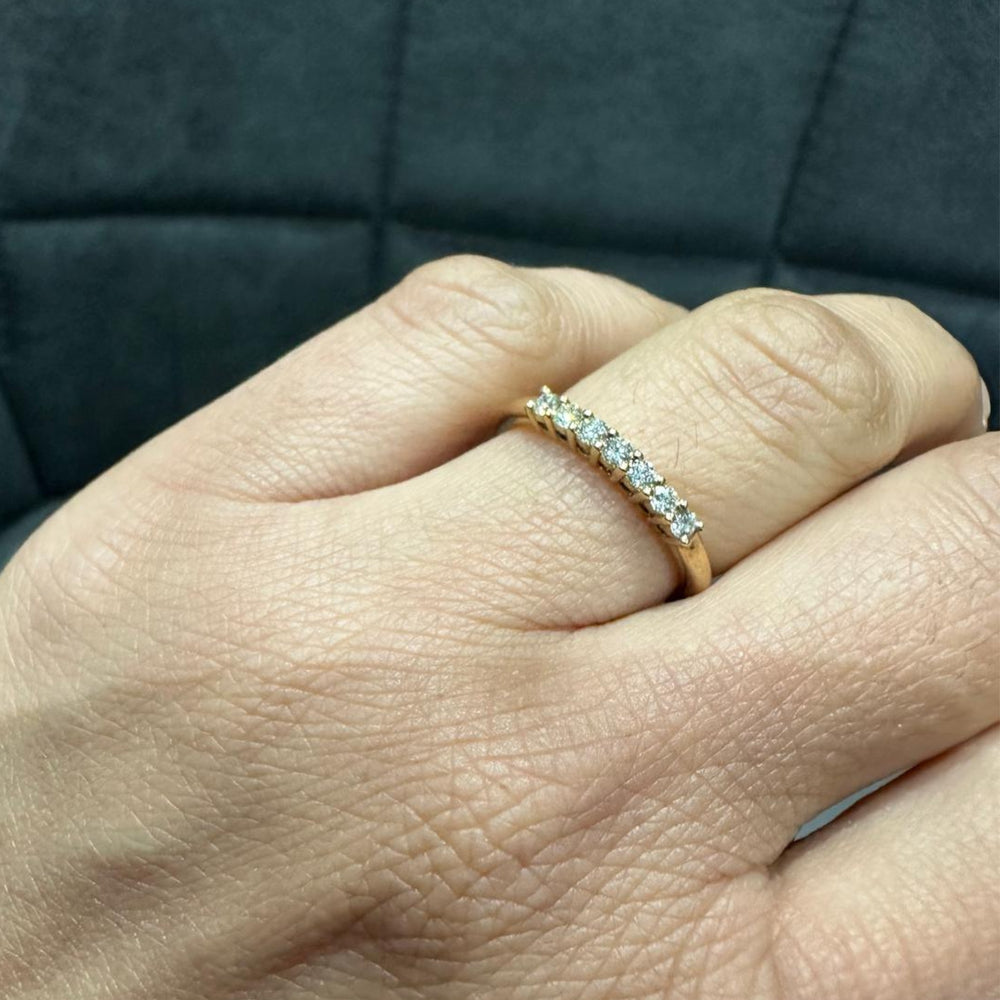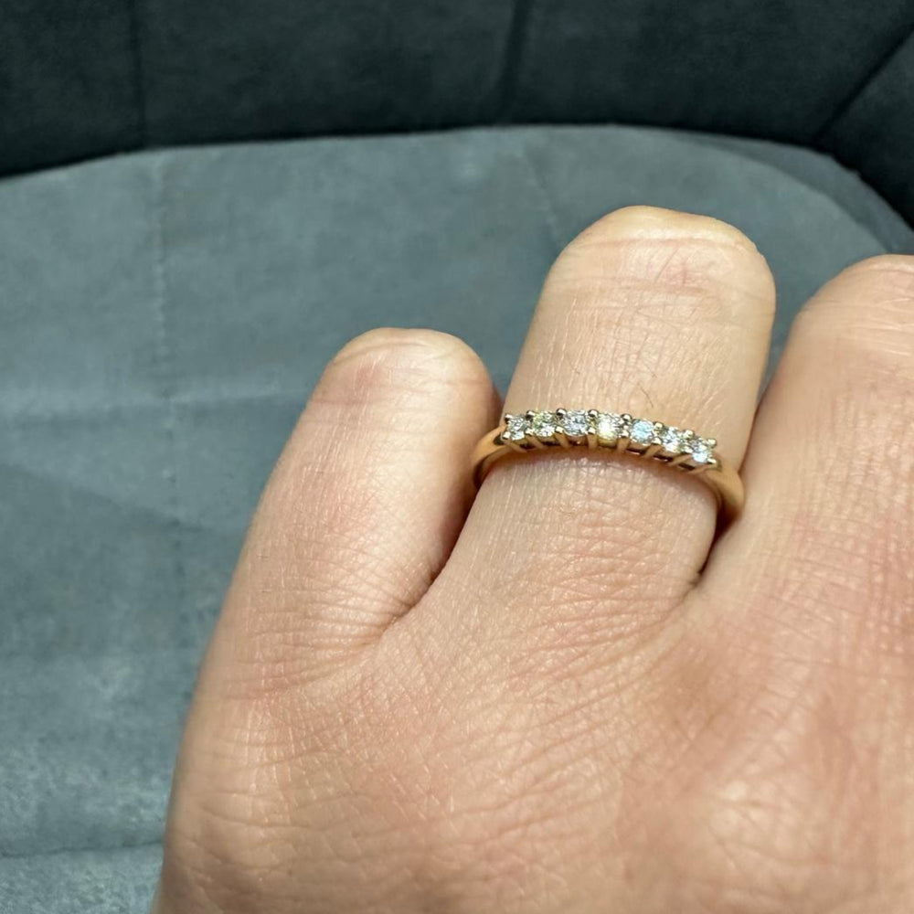 Elevate your everyday elegance with this stunning 7-stone natural diamond ring, beautifully crafted in radiant 9K yellow gold. The ring features seven perfectly matched prong set round-cut natural diamonds totaling 0.25 carat, offering a refined yet eye-catching sparkle.