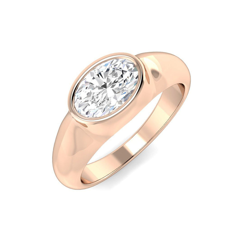 Discover timeless elegance with an oval bezel engagement ring crafted in premium gold and platinum. Featuring a stunning oval diamond solitaire in a secure bezel setting, this ring is studded with your choice of lab-grown or natural diamonds. IGI-certified lab diamonds in DEF color and VS–VVS clarity ensure exceptional brilliance and ethical quality.