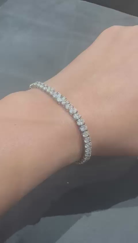 Oval Cut 7.08Ct Natural Diamond Tennis Bracelet in 18K White Gold | Fine Jewelry