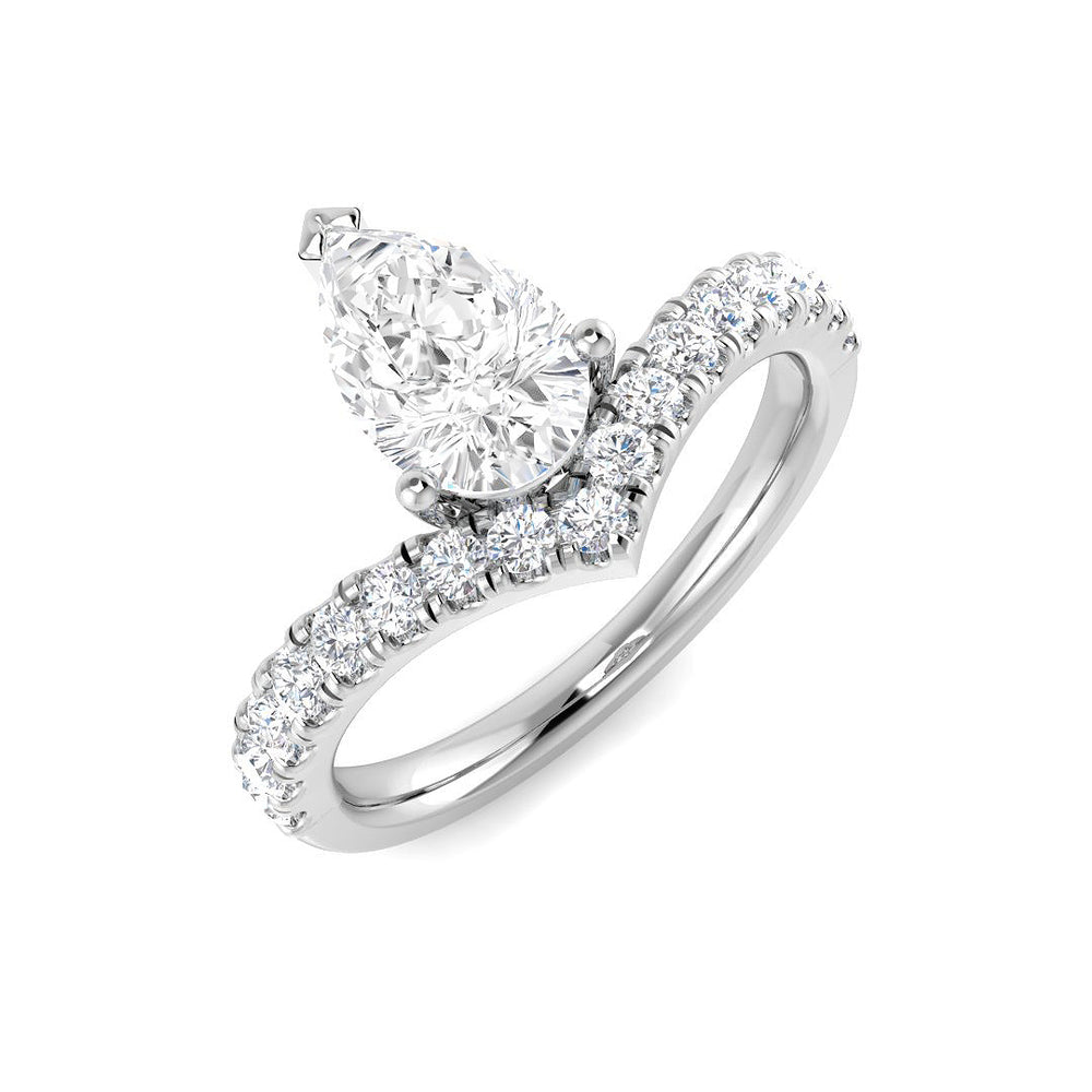 Available with a natural or lab-grown diamond, this ring is crafted in high-polish white, yellow, or rose gold, as well as platinum. The elongated pear shape enhances finger length while the pave shoulders provide a luxurious sparkle, making it an exceptional choice for proposals, anniversaries, or milestone moments.