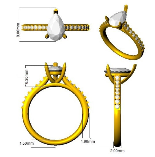 Make a graceful statement with this elegant pear cut diamond engagement ring, designed to combine brilliance with refined craftsmanship. The centre features a beautifully proportioned pear-shaped diamond, secured in a classic prong setting that enhances its unique teardrop silhouette and radiant sparkle.