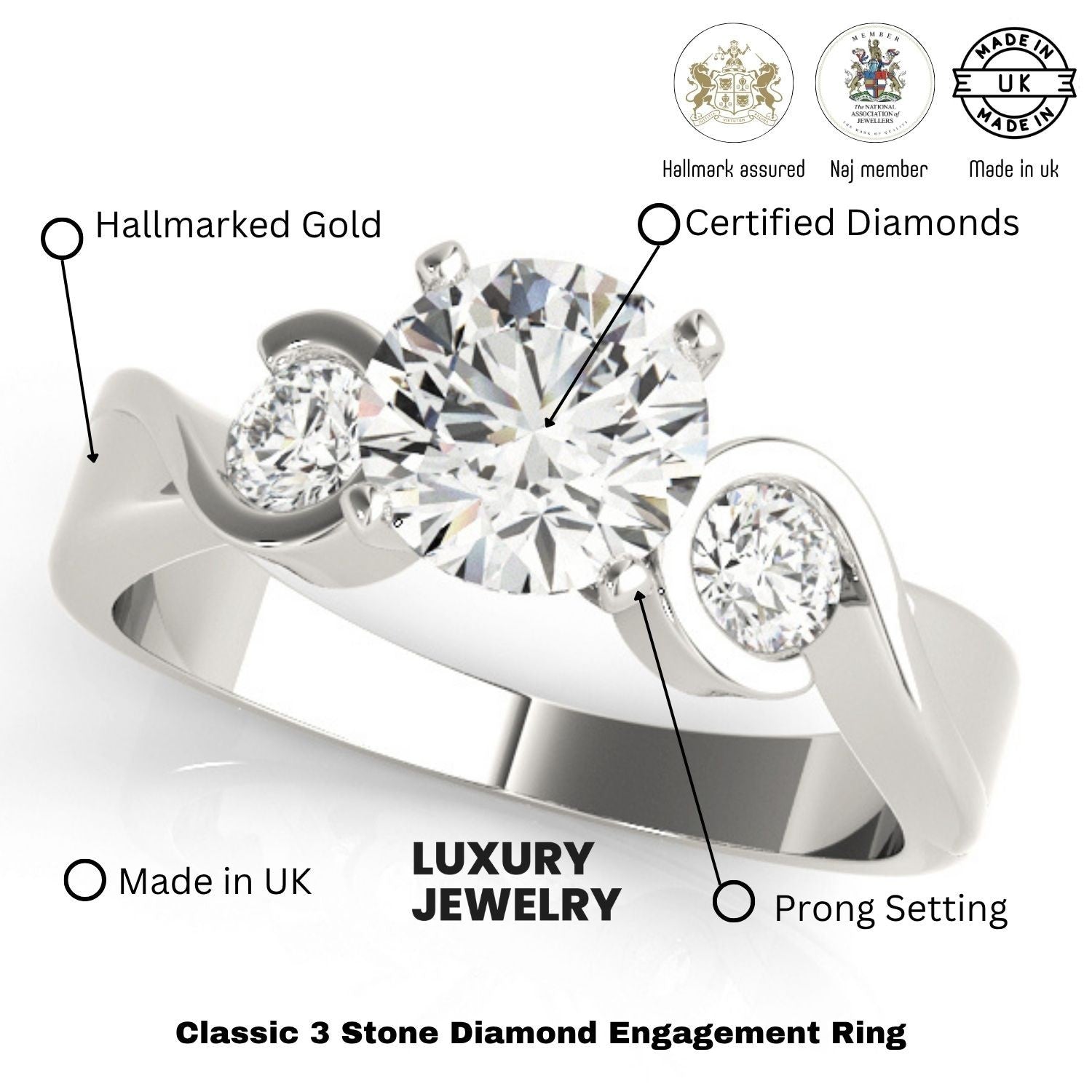 Timeless Design: The trilogy or 3-stone design symbolizes the past, present, and future of your love.