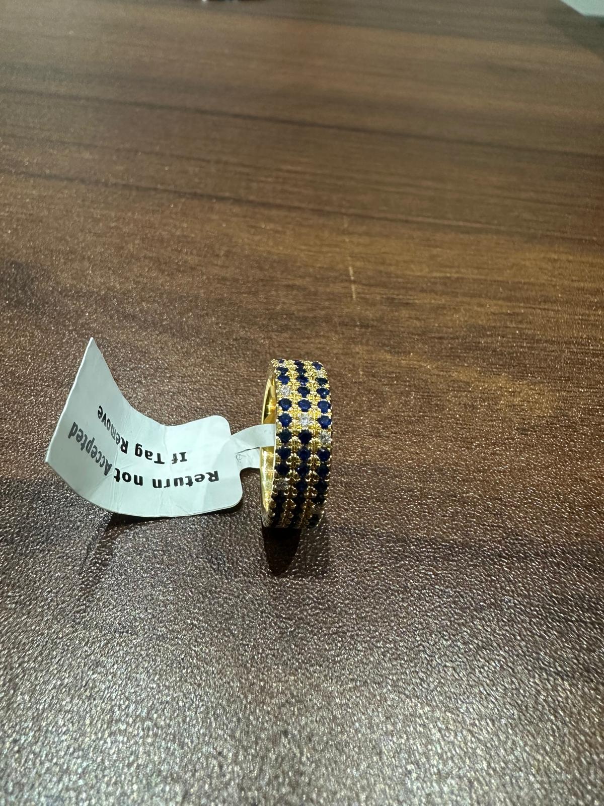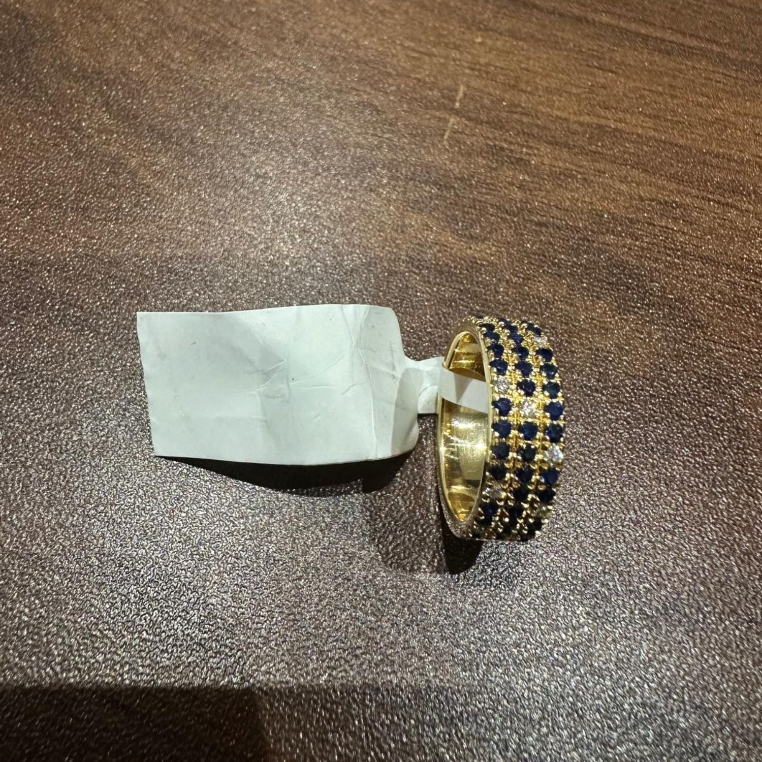 The ring features premium round-cut stones, with the diamonds totaling 1.00 carat and graded DE color and VVS clarity, ensuring extraordinary brilliance, clarity, and near-colorless beauty. The sapphires add a regal touch, making this band a sophisticated choice for stacking, anniversaries, or statement fashion wear.