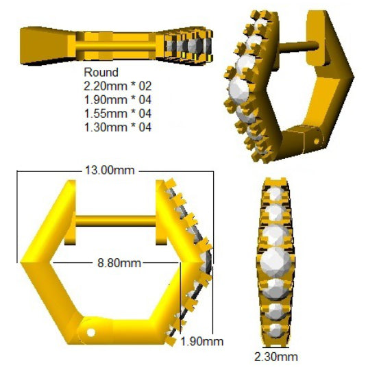 The geometric hexagonal design adds an innovative, modern style to the classic halo design, perfect for everyday wear or special occasions.