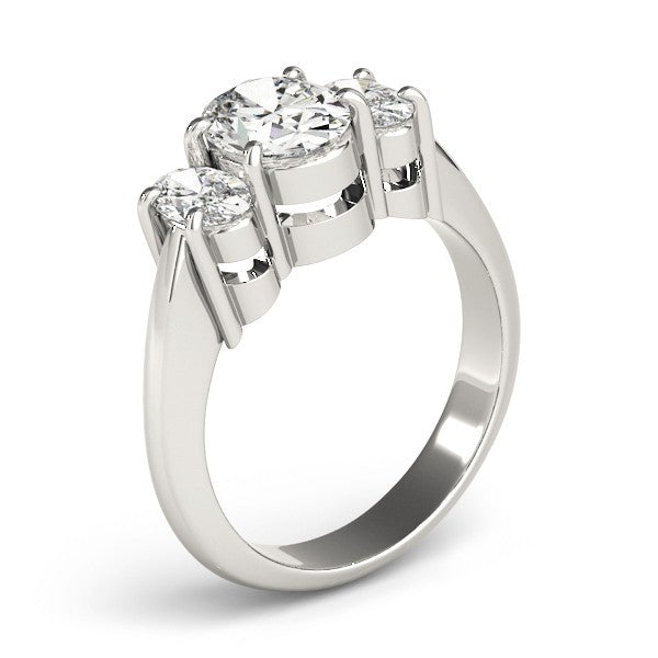 This graceful DE/VS Lab Grown Diamond Trilogy Engagement Ring features a luminous oval-cut center diamond flanked by two perfectly matched oval-cut side diamonds. The harmonious three-stone arrangement symbolizes your past, present, and future, delivering both sparkle and symmetry in a soft, elongated silhouette that flatters every hand.