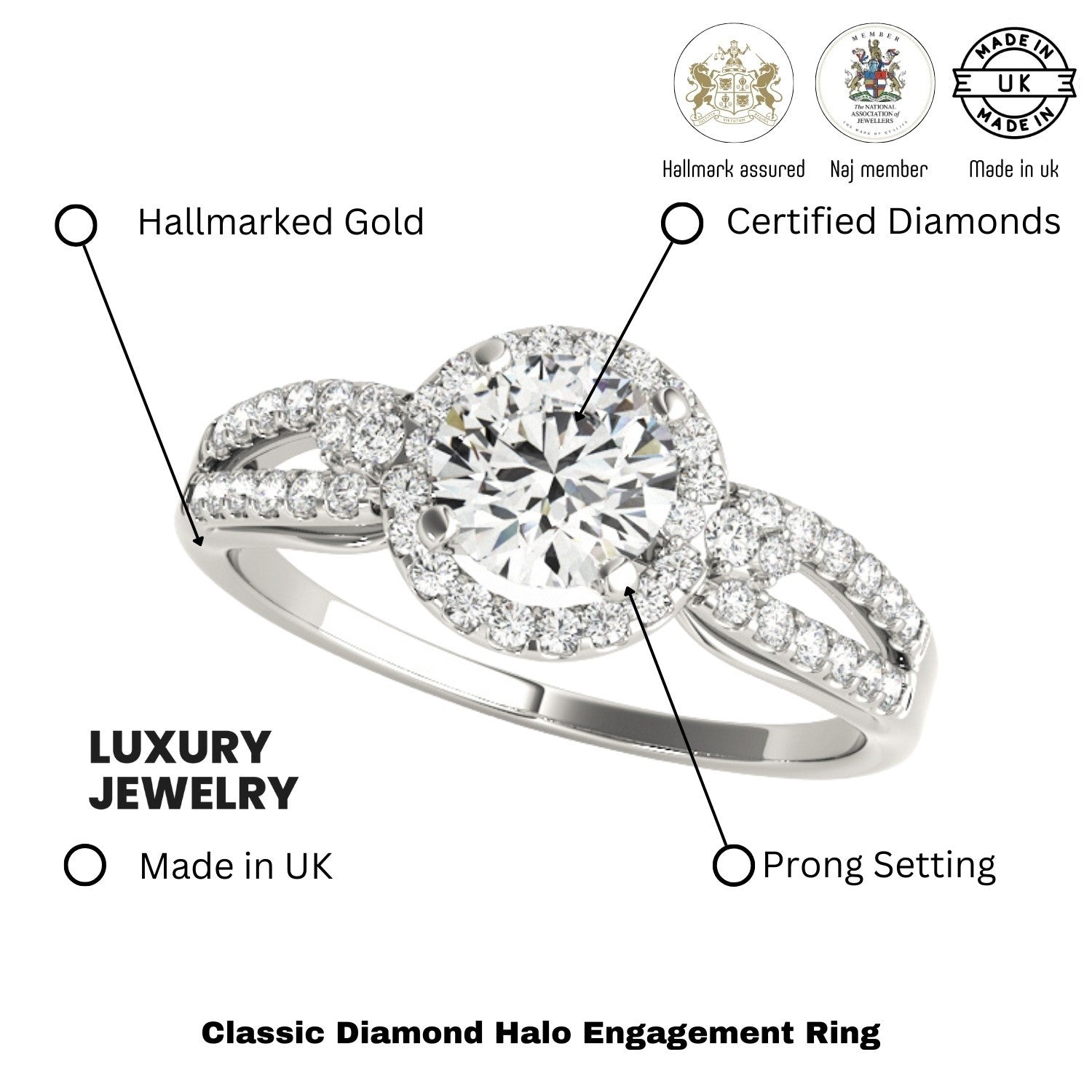 Available in 9K, 18K White, Yellow, Rose Gold, or Platinum, with total diamond weights ranging from 0.50Ct to 2.00Ct, each ring is handcrafted in the UK and hallmarked by the UK Assay Office for guaranteed quality and authenticity.