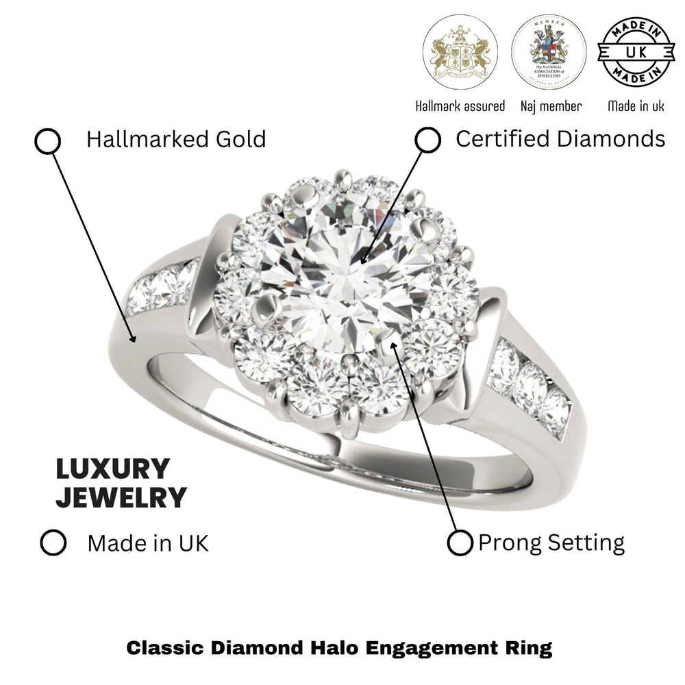 Available in 9K, 18K White, Yellow, Rose Gold, or Platinum, with total diamond weights ranging from 0.50Ct to 2.00Ct, each ring is handcrafted in the UK and hallmarked by the UK Assay Office for guaranteed quality and authenticity.