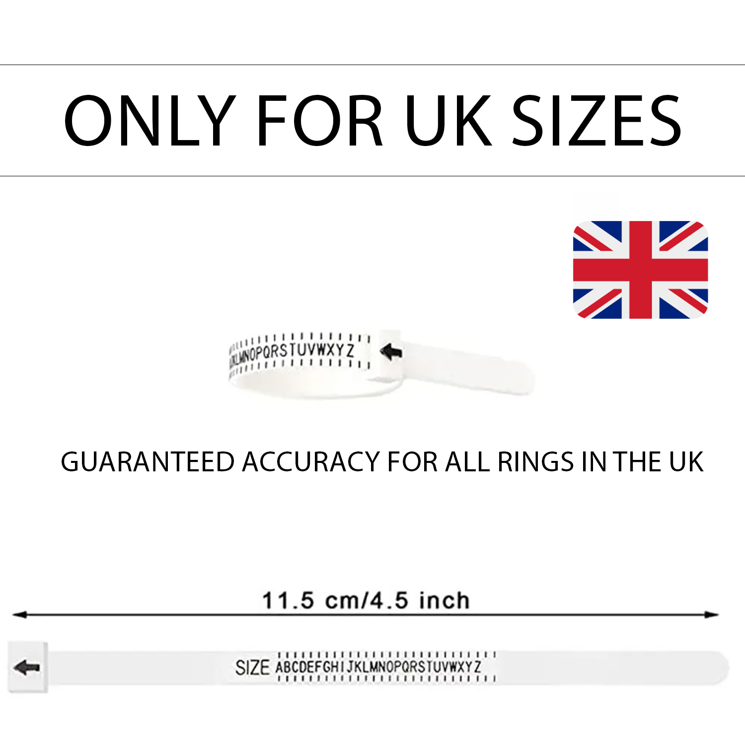 Get the perfect fit every time with our UK Ring Sizer Tool, designed for easy and accurate ring sizing at home. This adjustable finger gauge features clear UK size markings from A to Z+9, suitable for both women and men. Ideal for engagement rings, wedding bands, and fashion rings, it's a lightweight, reusable, and flexible plastic strip that simulates the feel of an actual ring. Whether you're shopping online or planning a surprise gift, this ring size measure tool is a must-have for getting the right size the first time